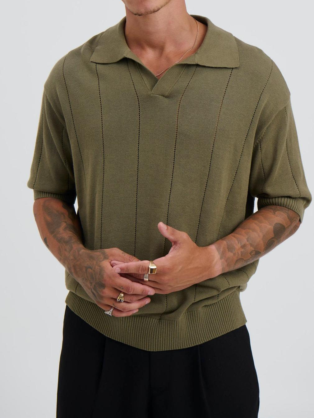 Casual Soft And Comfortable Khaki Polo Shirt 290252 Details