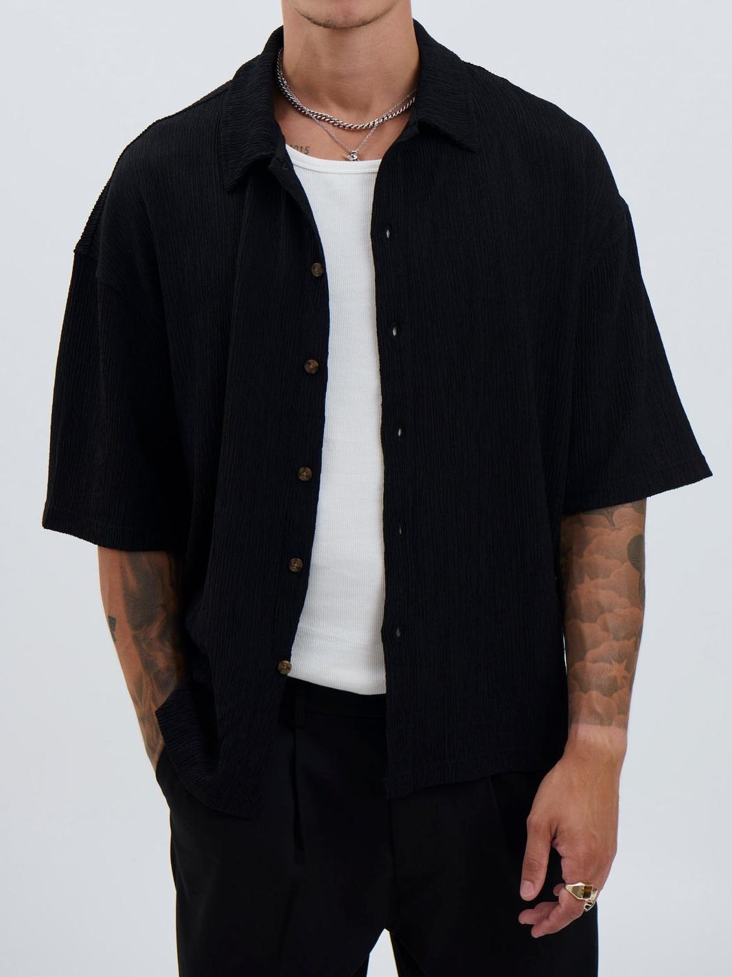 Casual Soft And Comfortable Daily Black Shirt 290248 Details